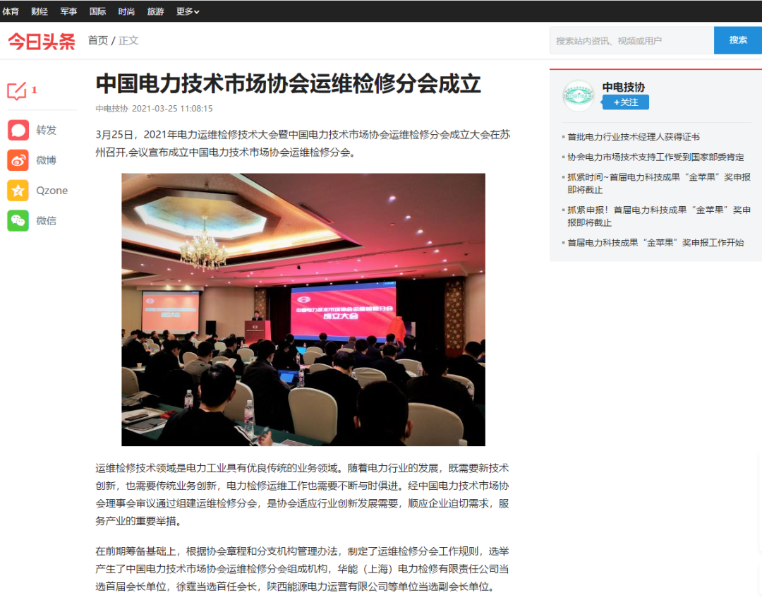 3月25日,2021年電力運(yùn)維檢修技術(shù)大會(huì)暨中國(guó)電力技術(shù)市場(chǎng)協(xié)會(huì)運(yùn)維檢修分會(huì)成立大會(huì)在蘇州召開(kāi),會(huì)議宣布成立中國(guó)電力技術(shù)市場(chǎng)協(xié)會(huì)運(yùn)維檢修分會(huì)。