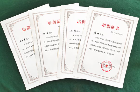 日前,公司組織青年員工參加由中國水利電力質量管理協會舉辦的2022年質量管理小組活動人員培訓,并順利獲取合格證書。