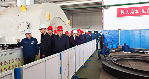 檢查組一行深入渭河項目部#5機組高背壓轉子更換標準化檢修現場,查看了現場平面布置圖、低壓轉子更換風險告知牌等展板,聽取了高背壓轉子更換工藝流程、現場定置化管理及安全管理工作開展情況,檢查了檢修現場的安全防范措施,并對項目部安全管理工作提出意見和要求,并參觀了項目部安全文化墻、安全培訓室以及退役軍人活動室。