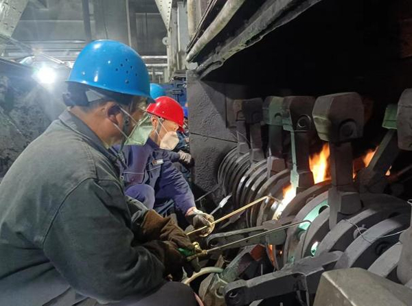 搶修方案確定后,兩組人員接續戰斗,展開搶修。在轟鳴的機器聲中,在粉塵彌漫的細碎煤機室內,大家搶時間、爭進度,經過42小時鏖戰,于12日凌晨5時許結束搶修,共完成20枚錘臂的拆除、回裝及9枚錘頭更換工作。