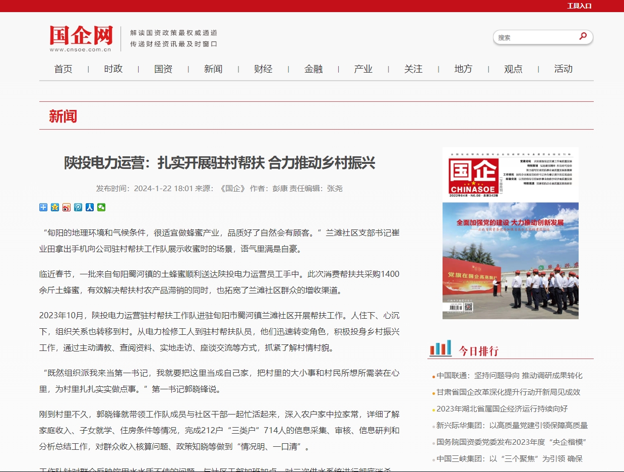 2024年,陜投電力運營將不斷豐富幫扶內(nèi)容、拓展幫扶途徑,通過勞務(wù)輸出、教育幫扶、技術(shù)支持及志愿服務(wù)等形式,助推鄉(xiāng)村產(chǎn)業(yè)振興,主動履行國企擔(dān)當(dāng)。