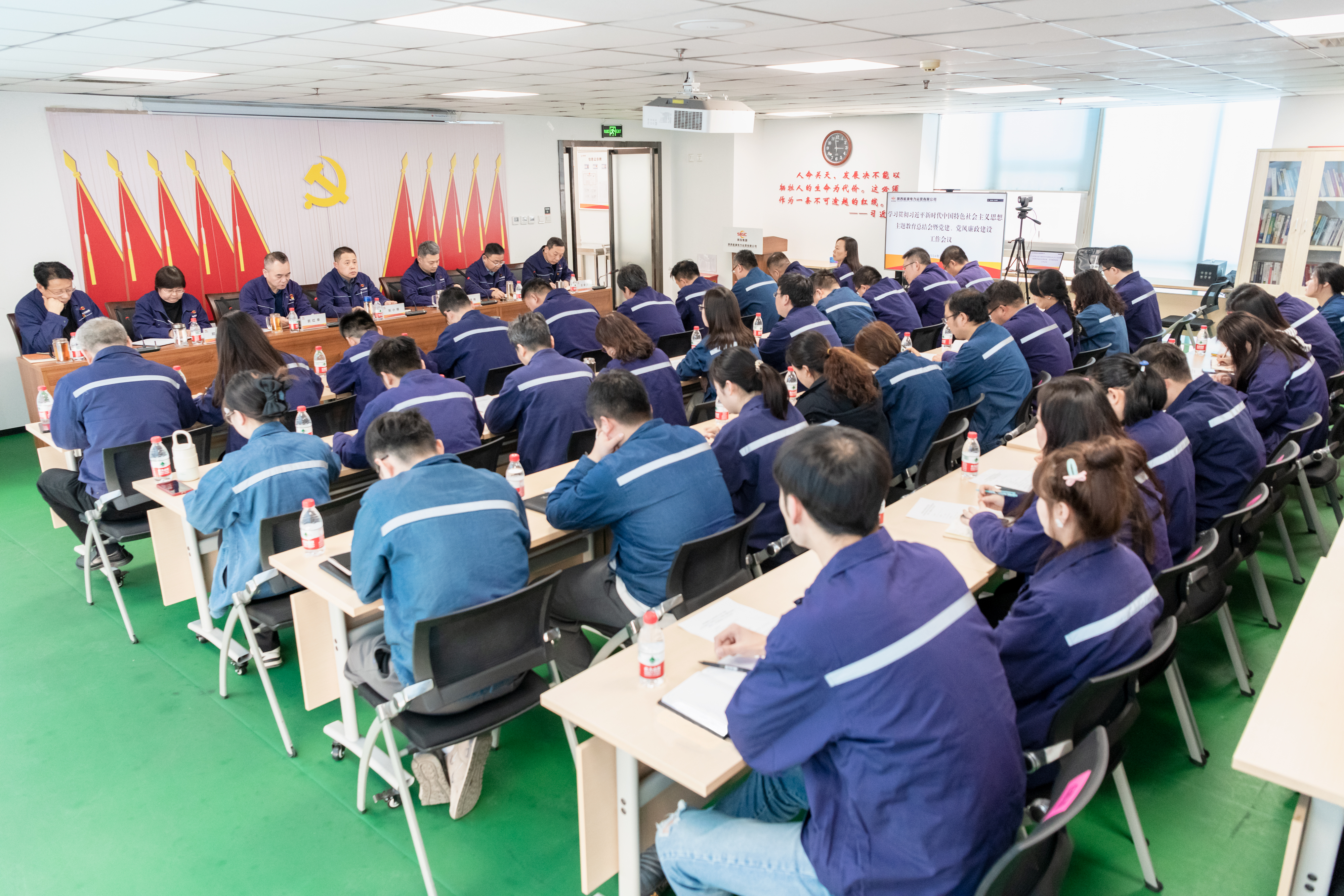公司領導班子成員、中層干部、各黨支部書記及黨員職工代表110余人參加會議。